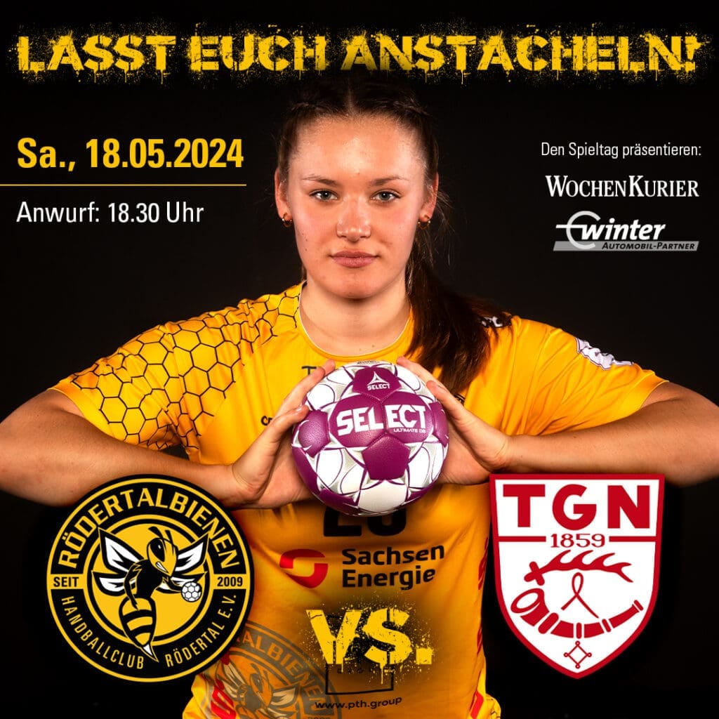 Nach den aufregenden letzten Spielen naht das Ende der Spielzeit 2023/24. Am kommenden Samstag, den 18. Mai 2024, findet bereits die letzte Partie im Bienenstock statt. Zum Heimspielfinale kommt die TG Nürtingen ins Rödertal. Anwurf ist wie üblich um 18:30 Uhr. Wie in den vergangenen Jahren wird das letzte Heimspiel von unserem Premiumsponsor und Unterstützer der ersten Stunde Winter Automobilpartner und Medienpartner Wochenkurier präsentiert.
