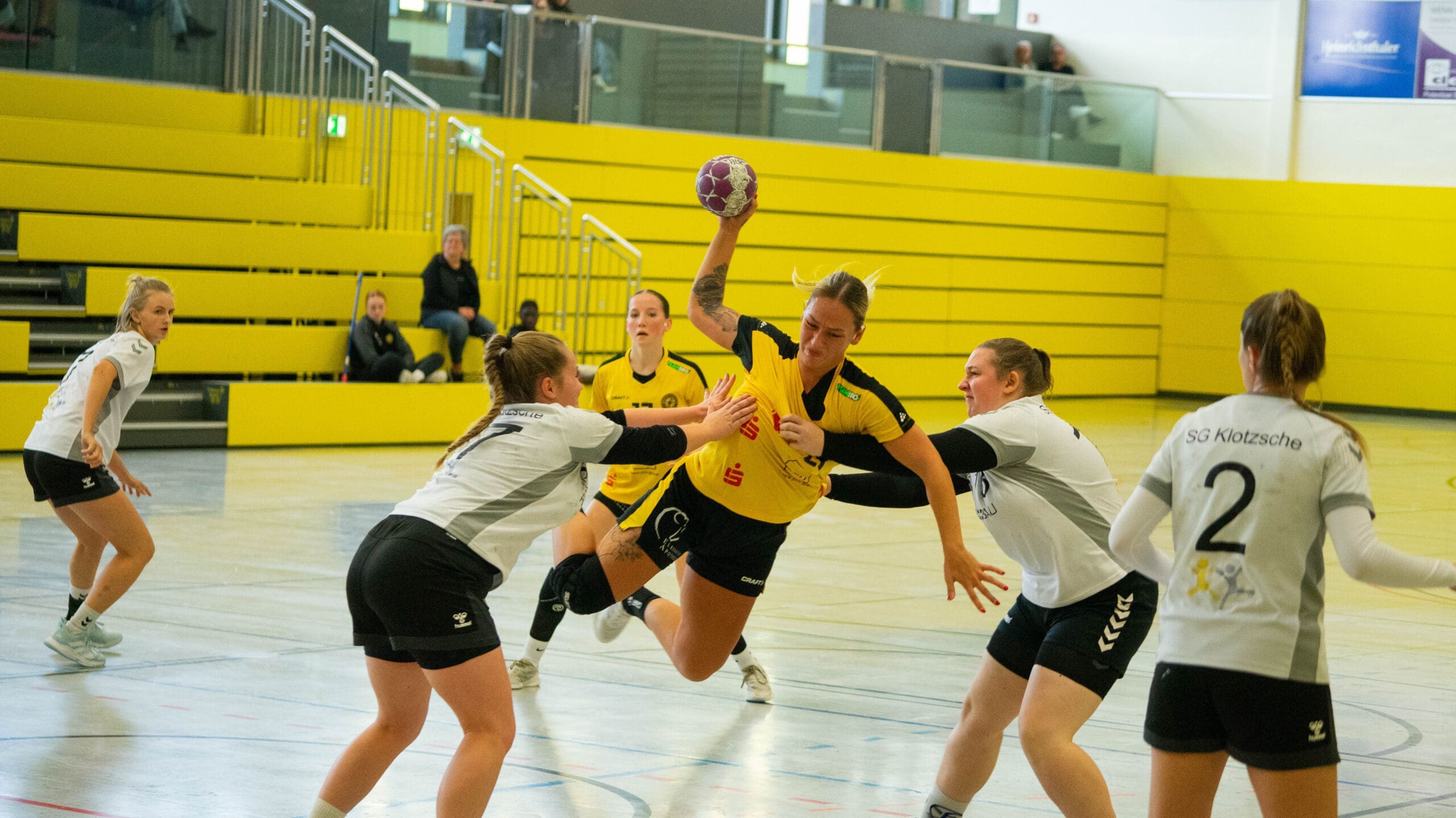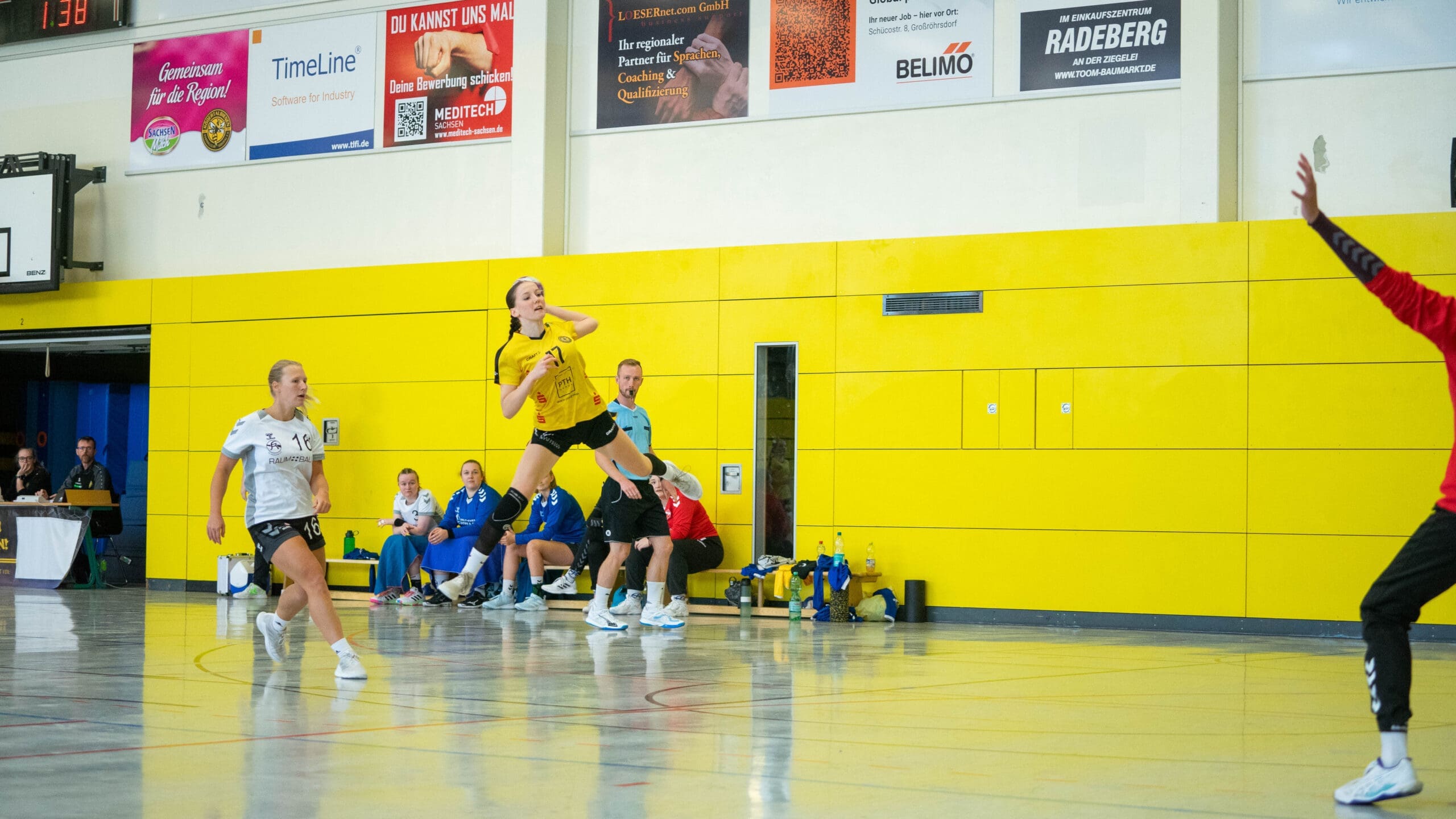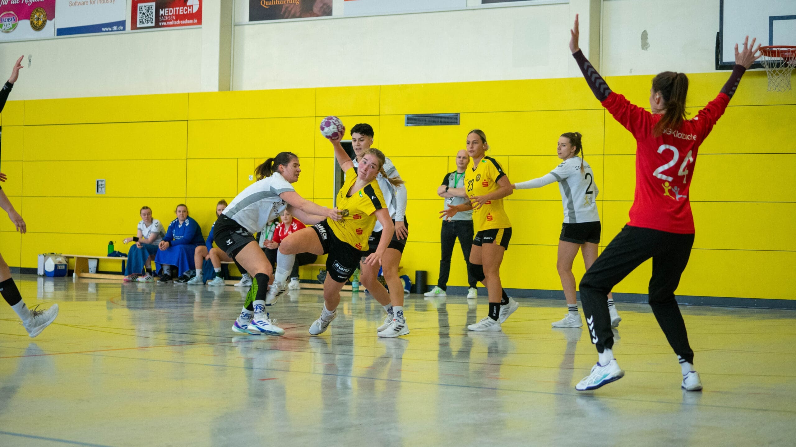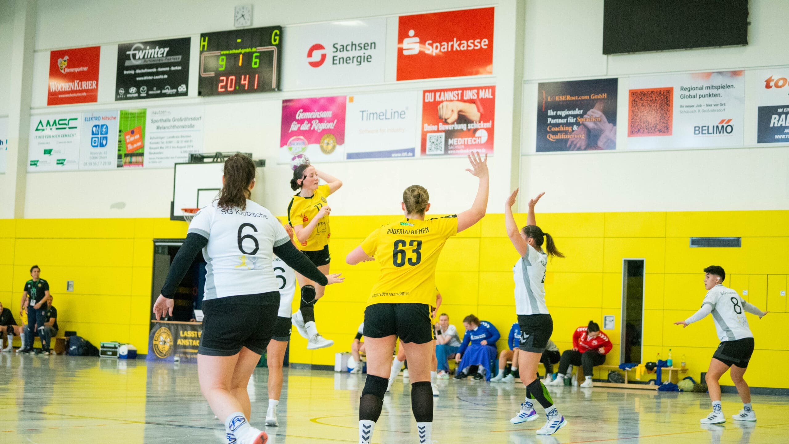 Doch wie gewonnen, so zerronnen. Klotzsche erwischte nach der Pause den besseren Start und konnte den Rückstand bis auf ein Tor (16:15) verkürzen. Und schon zeigten die jungen Mädels Nerven. Mit einem Time out beruhigte Trainerin Iva Kanjugovic ihr Team und nun lief es wesentlich besser. Klotzsche wurde bereits frühzeitig gestört und das zeigte Wirkung. Mehrere Balleroberungen brachten einfache Kontertore. Die Gäste konnten mit zunehmender Spieldauer das Tempospiel nicht mehr mithalten. Die letzten 12 Minuten gehörten dann nur noch den Juniorbienen. Sie bauten ihren Vorsprung kontinuierlich aus. Mit einem 10:4 Lauf sorgten sie für klare Verhältnisse.
