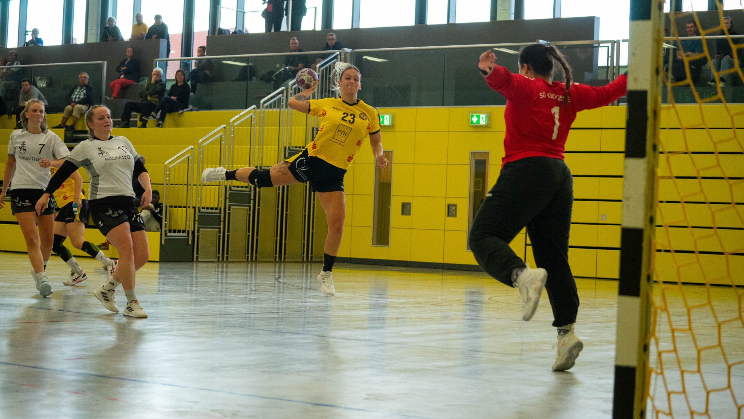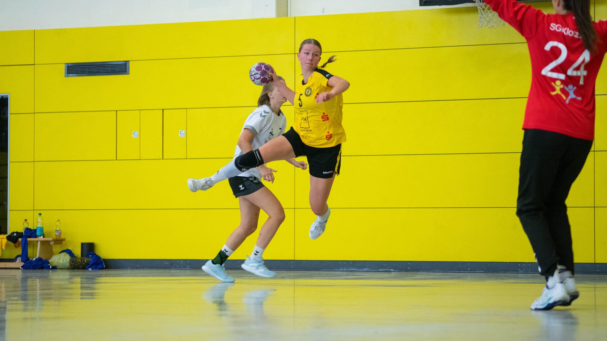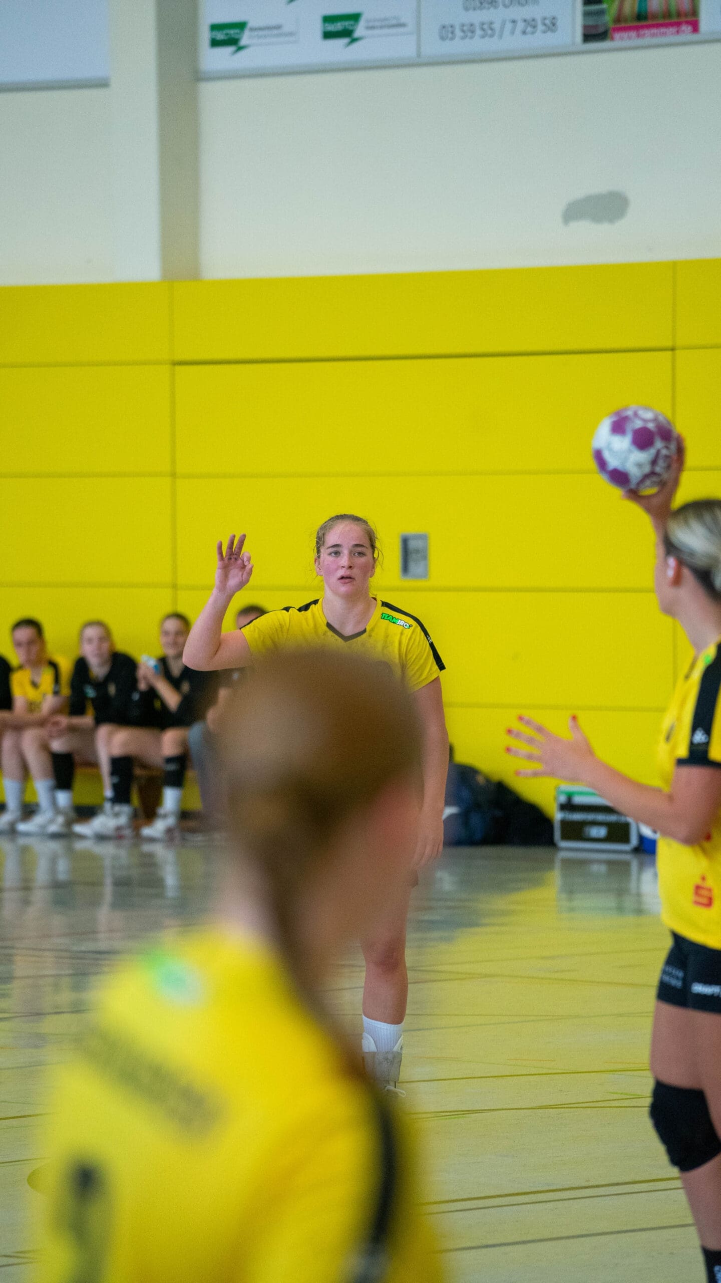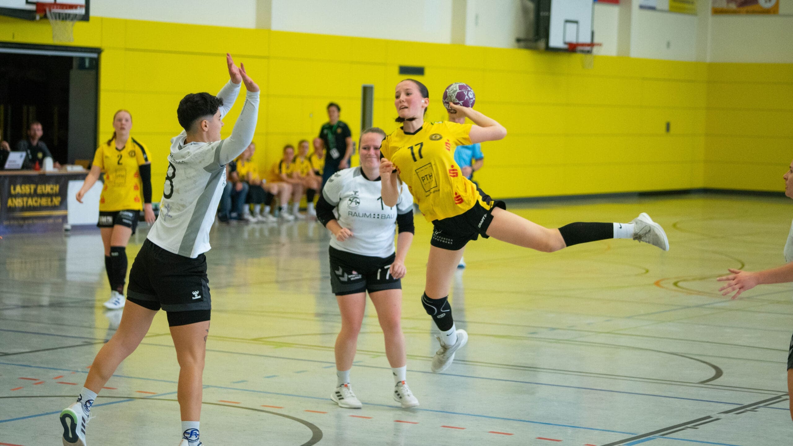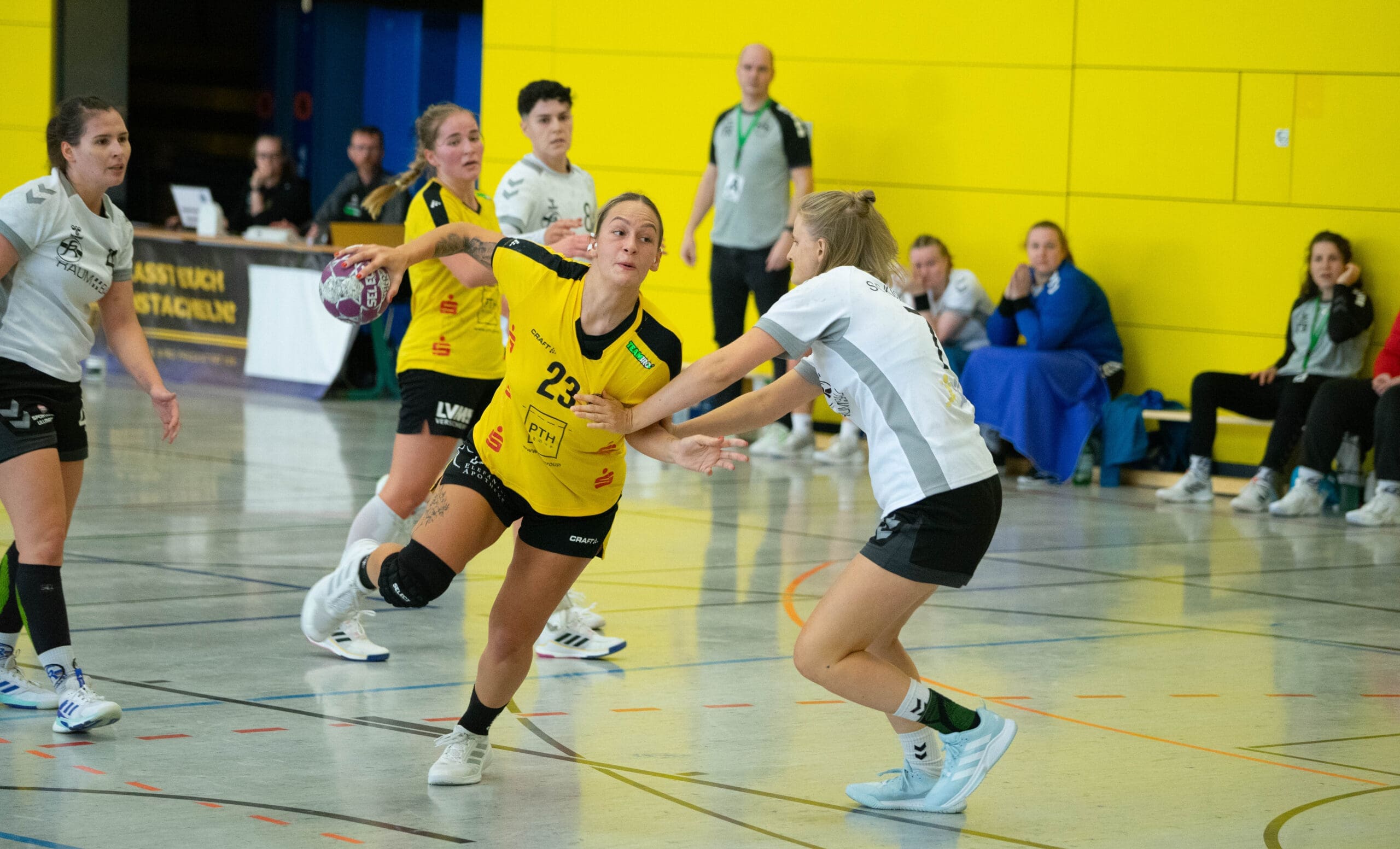 Den Gastgeberinnen merkte man zum Start ihre Unsicherheiten an. Nach vier Niederlagen am Stück fehlte einfach das Selbstvertrauen. Das Resultat waren jede Menge Fehler mit leichten Ballverlusten und eine mangelnde Chancenverwertung, selbst 100%-ige wurden liegengelassen. Doch mit zunehmender Spieldauerkamen sie besser ins Spiel. In dieser Phase des Spiels war es Natascha Foley (15 Tore), die einen „Sahnetag“ erwischte, zu verdanken, dass sich die Juniorbienen ab der 20. Minute langsam absetzen konnten. So ging es mit einer 4-Tore Führung in die Kabinen.
