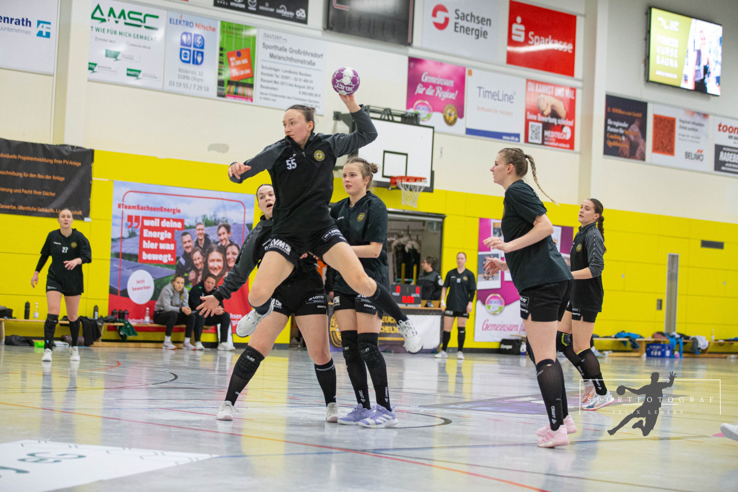Trotz gut herausgespielter Chancen fehlte im Angriff zunächst die Präzision. Viele Würfe verfehlten das Ziel. Jasmin Eckart war es schließlich, die diesen Knoten mit dem 2:2 löste. Danach konnten sich die Bienen leicht auf 3:5 absetzen, doch richtig Sicherheit brachte dieser Vorsprung nicht – die Luchse blieben dran.